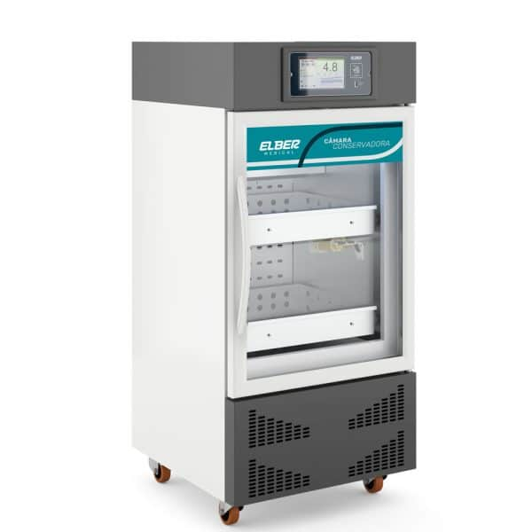 A câmara fria positiva funciona de 2°C a 8°C com temperatura controlada e homogênea. Garante a qualidade e eficácia de vacinas, exames, bolsas de sangue, medicamentos e outros materiais termolábeis. A câmara vertical de 150 litros registra os dados de todo o período da conservação e possui sistema de alarmes em casos de anormalidade. Também dispõe de opcionais, com tecnologia Elber Medical, que permitem o monitoramento remoto do equipamento, e em casos de queda de energia, sistema de baterias com até 72 horas de autonomia. Dessa forma, substitui a geladeira de vacinas doméstica e garante a qualidade e eficácia dos materiais armazenados a qualquer momento. Câmara de conservação possui regulamentação da Anvisa e assistência credenciada em todo território nacional. O equipamento vem acompanhado de pen drive.