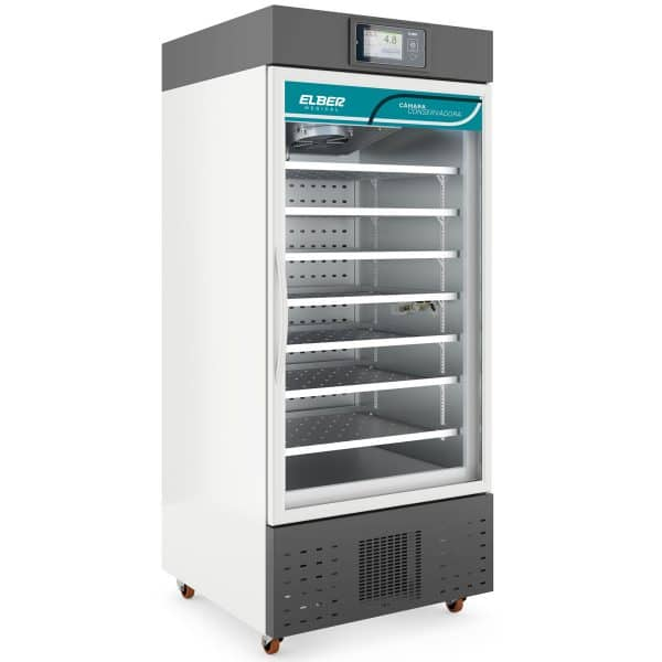 A câmara fria positiva funciona de 2°C a 8°C com temperatura controlada e homogênea. Garante a qualidade e eficácia vacinas, exames, bolsas de sangue, medicamentos e outros materiais termolábeis. Assim, substitui a geladeira de vacinas doméstica e garante a qualidade e eficácia dos materiais armazenados. A câmara vertical de 700 litros registra os dados de todo o período da conservação e possui sistema de alarmes em casos de anormalidade. Também dispõe de opcionais, com tecnologia Elber Medical, que permitem o monitoramento remoto da câmara, e em casos de queda de energia, sistema de baterias com até 72 horas de autonomia. Câmara de conservação possui regulamentação da Anvisa e assistência credenciada em todo território nacional. Equipamento acompanha pen drive.