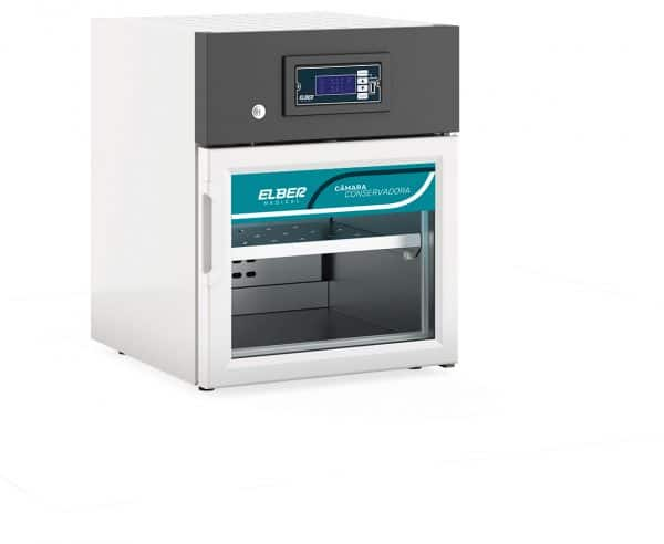 A câmara fria positiva funciona de 2°C a 8°C com temperatura controlada e homogênea. Garante a qualidade e eficácia das vacinas animais armazenadas. A câmara compacta de 50 litros registra os dados de todo o período da conservação e possui sistema de alarmes em casos de anormalidade. Também dispõe de opcionais, com tecnologia Elber Medical, que permitem o monitoramento remoto da câmara, e em casos de queda de energia, permite bateria acoplada para até 5 a 27 horas de autonomia. Câmara para conservação de vacinas animais com regulamentação da Anvisa e assistência credenciada em todo território nacional. Equipamento acompanha pen drive.