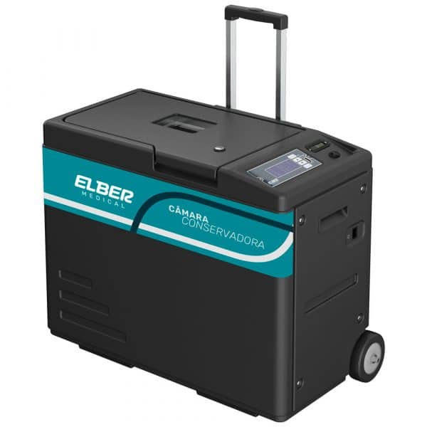 A câmara portátil para ações extramuro funciona de 2°C a 8°C com temperatura controlada e homogênea para garantir a mesma qualidade de armazenamento da clínica em qualquer lugar. Possui fonte quadrivolt, puxador retrátil e rodízios para fácil manuseio. A câmara horizontal de 30 litros registra os dados de todo o tempo de conservação e possui sistema de alarmes em casos de anormalidade. Também dispõe de bateria acoplada para até 8h de autonomia. Câmara para conservação de vacinas, exames, bolsas de sangue, medicamentos e outros materiais termolábeis com regulamentação da Anvisa e assistência credenciada em todo território nacional. Equipamento acompanha pen drive.