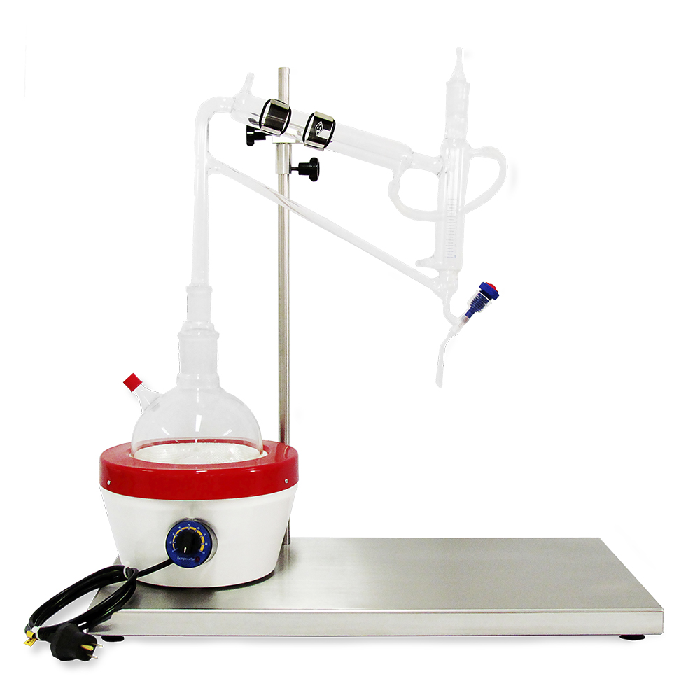 Utilizado para extração por hidrodestilação (arraste a vapor) de óleos essenciais compostos voláteis presentes nas plantas aromáticas e utilizados pelos seus aromas sabores cores e propriedades medicinais na produção de: fármacos antioxidantes biocidas perfumes repelentes desengraxantes alimentos bebidas cosméticos na indústria química e em pesquisas e desenvolvimento. Ideal para testes preliminares e pequenas produções para pesquisa.