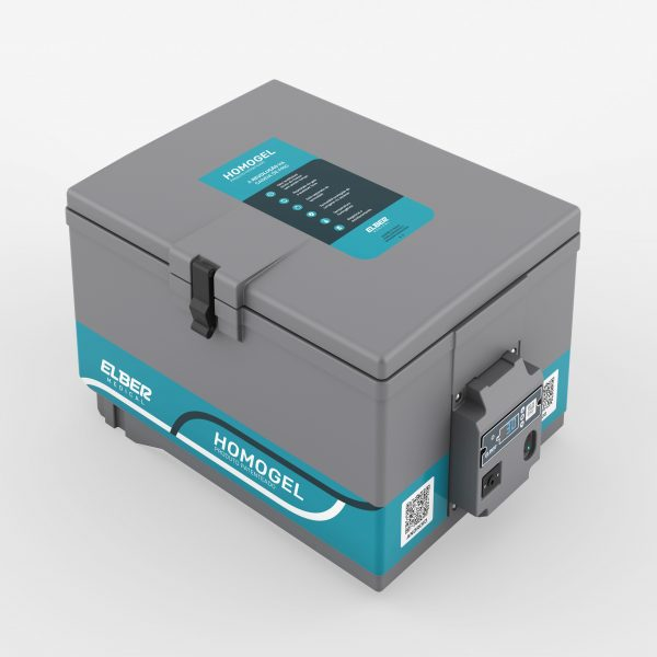 A solução inteligente para o preparo rápido e seguro do transporte de vacinas, medicamentos e exames. Seu sistema permite que o gelo reciclável seja colocado direto no Homogel, sem perder tempo aguardando. E permite ser reposto a qualquer momento, ganhando mais tempo de atendimento.  Modelo ótimo para uso em bancadas de salas de vacinação que precisam de mais doses. Além disso, o Homogel 20 garante a segurança dos termolábeis, mantendo-os totalmente separados do gelo e eliminando qualquer risco de aquecimento ou congelamento por contato direto. Com homogeneidade de temperatura e relatórios em tempo real acessíveis na palma da mão através do aplicativo Elber Medical, o Homogel 20 é a revolução na Cadeia de Frio, transformando a forma como a saúde se move.