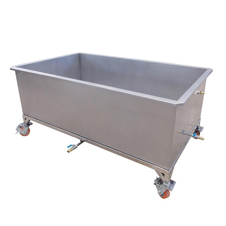 • Tanque construído em chapa de aço inox AISI 304 liga 18.10 com espessura  2,0 mm. (O tanque deverá apresentar cantos bem acabados para evitar acúmulos de resíduos, sujeiras ou seja para facilitar a limpeza);